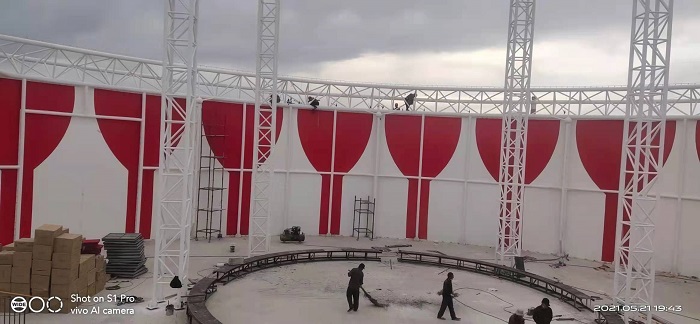燁興-新疆喀什馬戲團(tuán)膜結(jié)構(gòu)表演館近期已進(jìn)入全面裝膜階段。今天小編將帶來(lái)現(xiàn)場(chǎng)的最新情況。